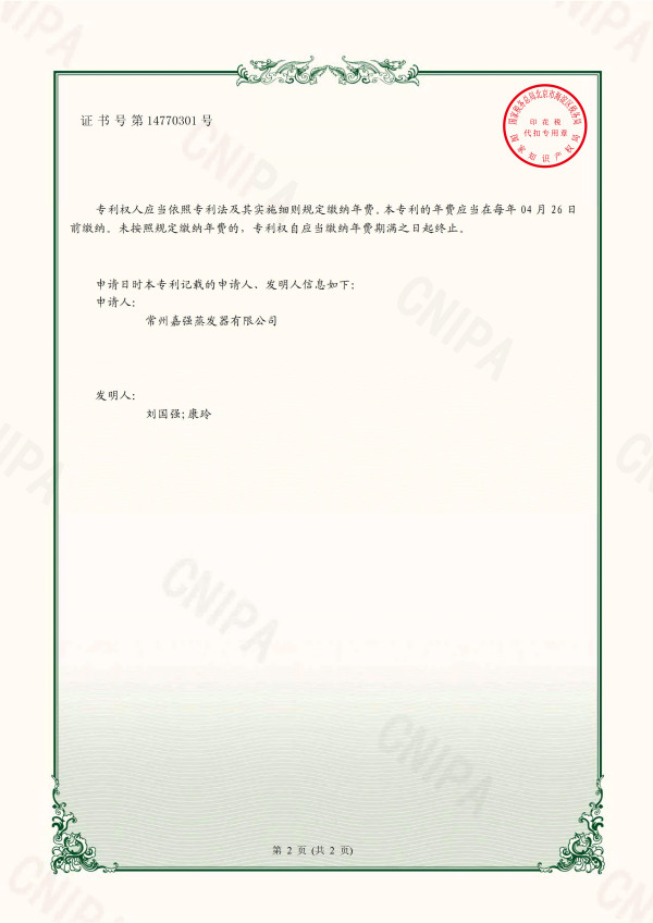 一種低溫熱泵蒸發器-實用新型專利證書