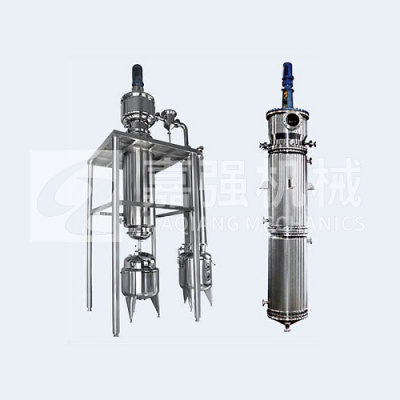 刮板薄膜蒸發器,是一種通過旋轉刮板強制成膜,可在真空條件下進行降膜蒸發的新型高效蒸發器,傳熱系數大、蒸發強度高、過流時間短、操作彈性大,尤其適用于熱敏性物料、高粘度物料及易結晶顆粒物料的蒸發濃縮、脫溶、蒸餾等,在化工、醫藥、農藥等行業得到廣泛應用。